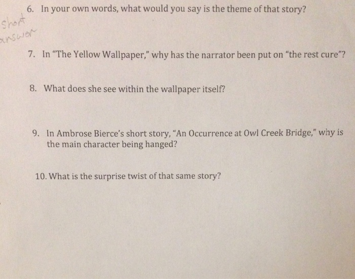 The Yellow Wallpaper Essay Questions Gradesaver