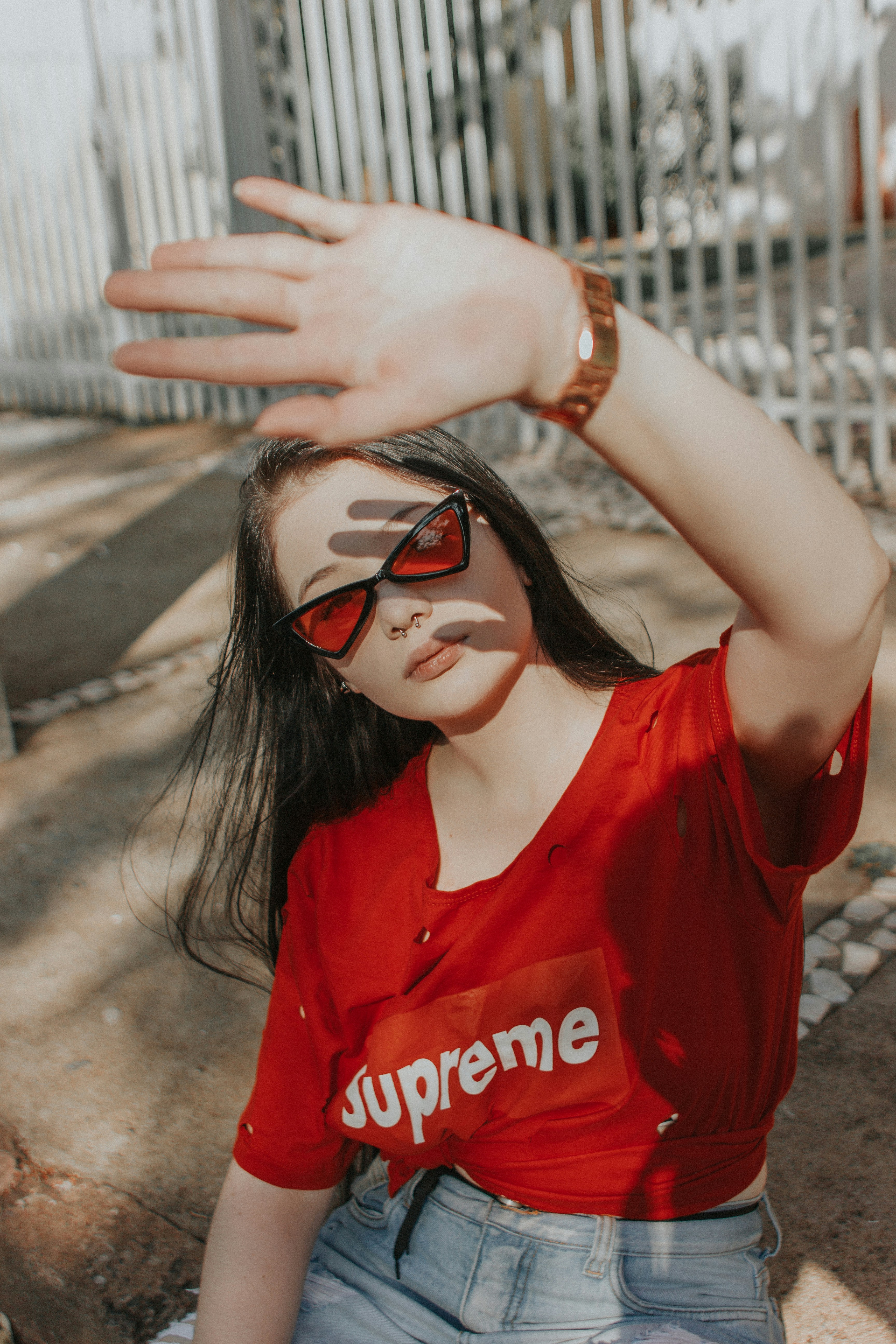 Woman Wearing Red Supreme Shirt Photo Free Person Image On Unsplash